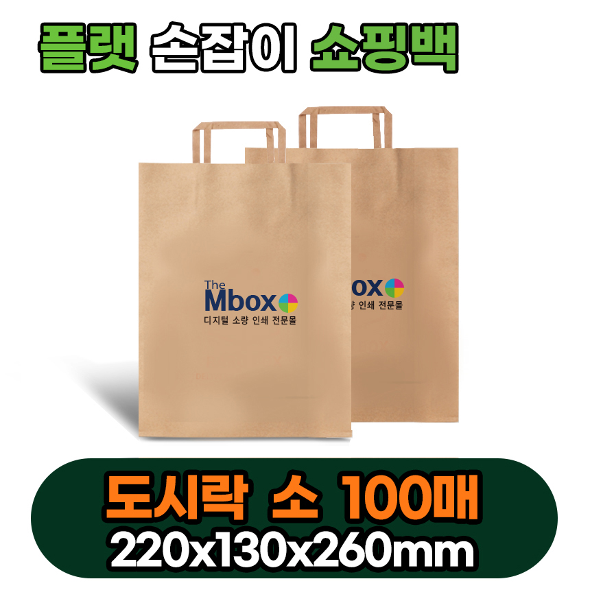 100매 플랫 크라프트 쇼핑백 로고 인쇄 / 도시락(소) 220*130*..