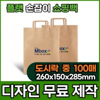 100매 플랫 크라프트 쇼핑백 로고 인쇄 / 도시락(대) 260*170*..